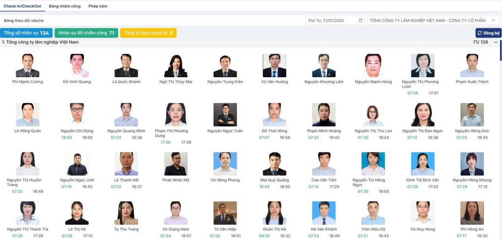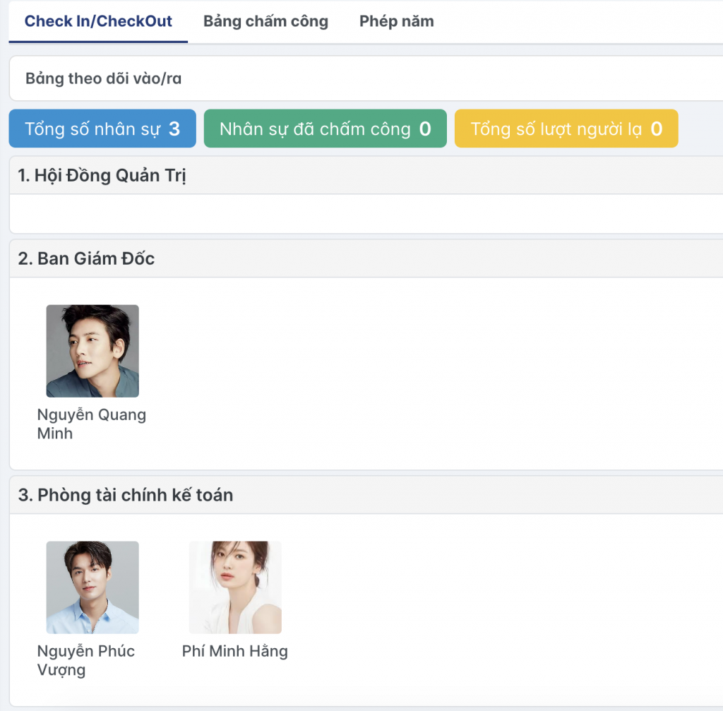 Tích hợp camera AI chấm công tự động: Kiểm tra số nhân sự chấm công, Những người lạ mà camera quét được
