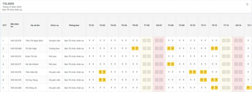 Bảng chấm công tháng; Bảng theo dõi phép năm