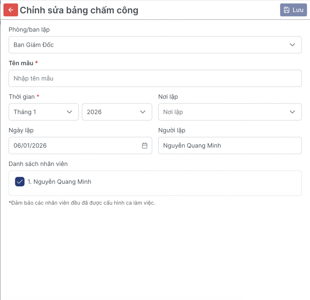 Import bảng chấm công hoàn chỉnh vào hệ thống