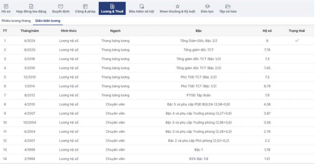 Cho phép xây dựng hệ thống thang bảng lương theo đúng quy định đang áp dụng tại tổ chức